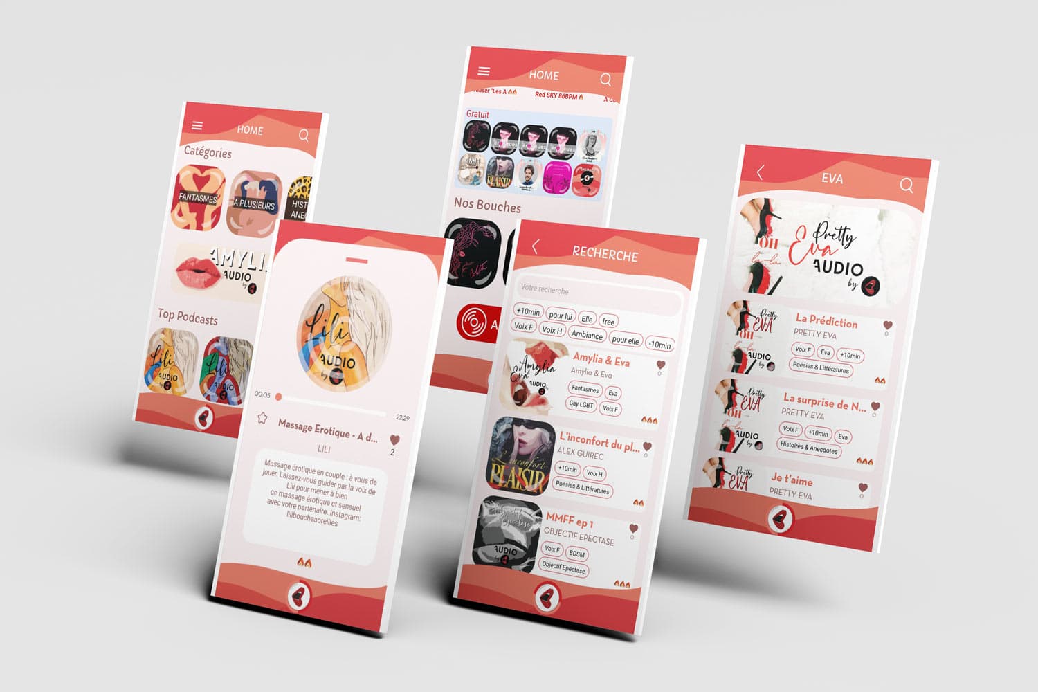 « Bouche à oreilles » est la première application française de podcasts audio sexy qui stimule l’imagination et favorise le bien-être. Elle a su séduire les auditeurs français grâce à sa vision innovante et son contenu de qualité. Pour débuter son activité sereinement et s’assurer de toucher encore plus de monde, l’équipe de « Bouche à oreille » a fait appel à l’agence web Fresh pour bénéficier de notre expertise en matière de développement d’application mobile et de stratégie de lancement sur le marché (stratégie go to market).